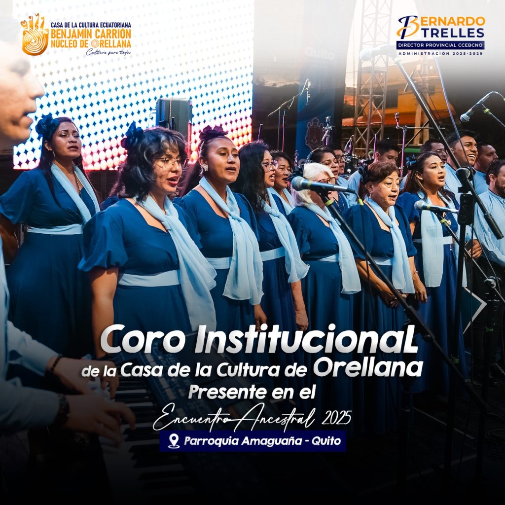 El Coro Institucional de la Casa de la Cultura Ecuatoriana “Benjamín Carrión”, Núcleo de Orellana, fue parte del Encuentro Ancestral, un evento que reunió arte, música y tradición en un espacio de intercambio cultural y comunitario. La jornada se desarrolló el 25 de octubre en la Parroquia Amaguaña, Distrito Metropolitano de Quito, bajo la organización de la Fundación Alza Alza y la Secretaría de Cultura del DMQ. La participación del coro destacó por su interpretación de repertorios que exaltan la identidad ecuatoriana y la diversidad cultural del país, contribuyendo a fortalecer los lazos entre las distintas expresiones artísticas nacionales. Este tipo de espacios promueven el diálogo intercultural y la valoración del patrimonio intangible a través de la música, reafirmando el compromiso de la Casa de la Cultura Ecuatoriana Núcleo de Orellana con la difusión del arte y las tradiciones del Ecuador.