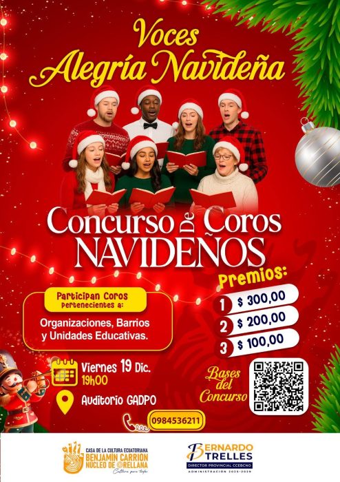 INVITACIÓN – VOCES ALEGRÍA NAVIDEÑA 2025 Concurso de Coros Navideños La Casa de la Cultura Ecuatoriana “Benjamín Carrión” Núcleo de Orellana invita a los coros